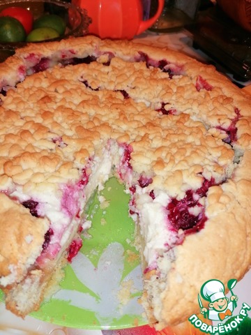 Тертый пирог, я думаю, пекли все. Обычно его делают с вареньем, джемом. А этот с нежной начинкой из сметаны. Начинка по вкусу похожа на суфле.