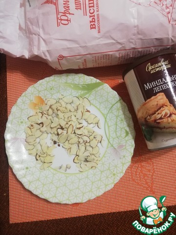 В мучную смесь просеять сахарную пудру и миндальную муку. У меня не было миндаля и я просто измельчила миндальные лепестки.
