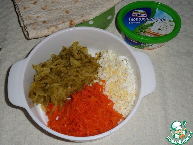 Рецепт «Рулет из лаваша с творожным сыром»: