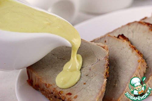 Рецепт два в одном – тут и мясо в горчичном маринаде, и соус к нему. Соус очень вкусный и с мясом сочетается превосходно, причем как с горячим, так и с холодным! Также он отлично подойдет к шашлыку, сарделькам и сосискам, запеченным или отварным овощам. Рекомендую!