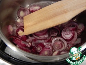 Сделаем подложку из лука. Для этого красный лук порежем.