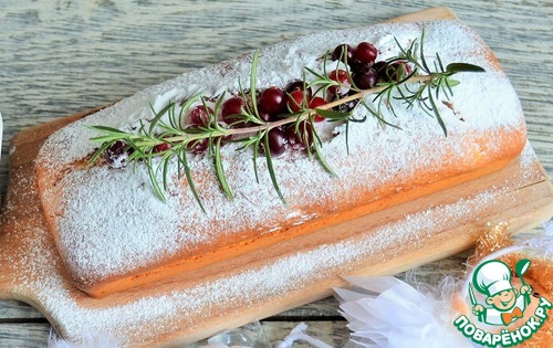 Для подачи кекс украсить сахарной пудрой, веточкой розмарина и ягодами клюквы. Вес кекса 500 г..