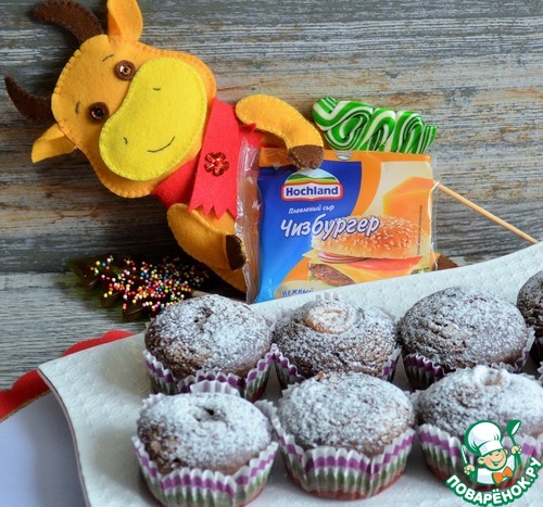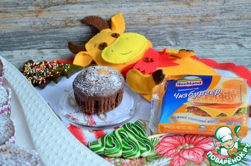На праздничное чаепитие испечём такие оригинальные и очень вкусные кексы. Шоколадные, с пикантным сыром - чизбургер. Рекомендую.