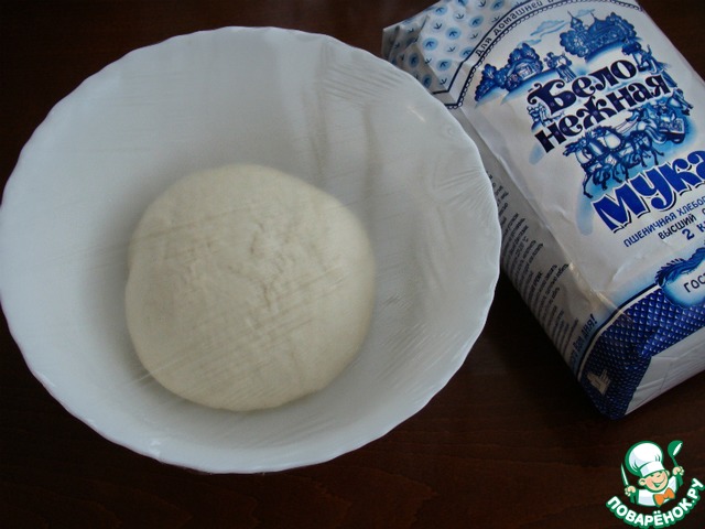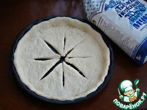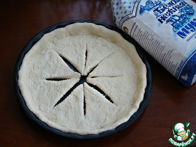 Большую часть раскатать в круг и перенести в форму для выпечки, предварительно смазанную маслом. ( форма для выпечки 28- 30 см )