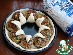 Красивый, ароматный пирог украсит любой праздничный стол. Нежное тесто, в сочетании с мясной и овощной начинкой - никого не оставит равнодушными. Отличный вариант горячей закуски.