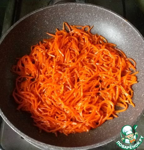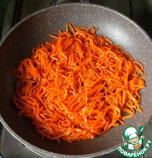 Морковь натереть на корейской терке. Обжарить на растительном масле. Добавить соль, мед, наршараб, аккуратно перемешать. В конце, если любите, можно добавить измельченный чеснок.