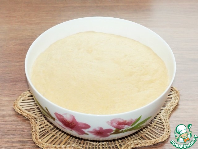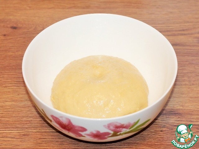 6. Смазываем миску и ком теста растительным маслом (1 ст. л.), закрываем пленкой и ставим в теплое место до увеличения теста в 2,5 раза.