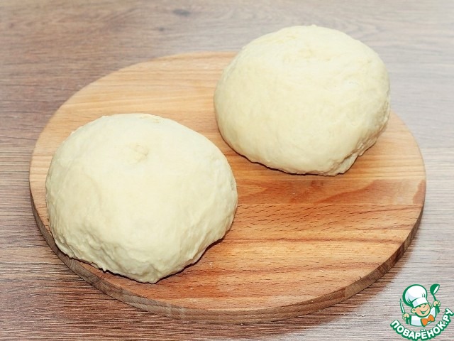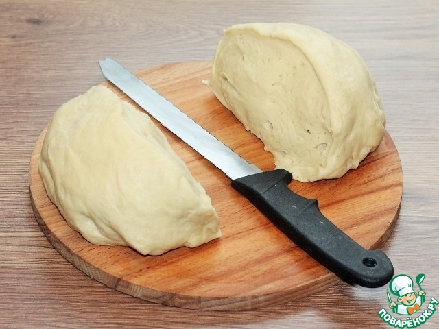9. Делим тесто на две равные части.