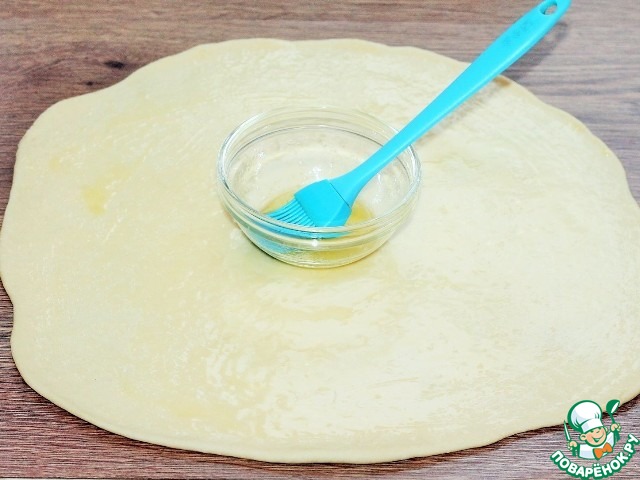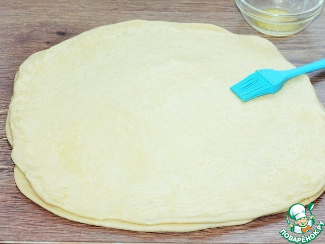 13. Кладем на него, вторую пластину теста и смазываем топленым сливочным маслом.