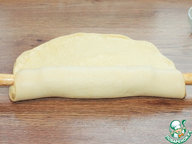 14. Скатываем два слоя теста на скалку.