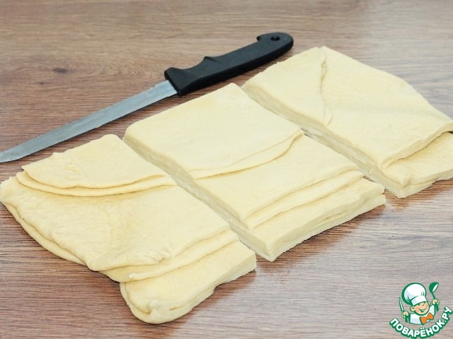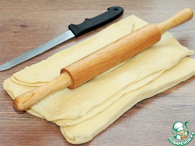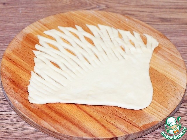 15. Разрезаем скатку теста по всей длине (верх).
