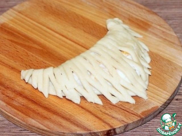 22. Закрываем начинку лепестком теста. Получилось 9 пирожков. Из обрезков теста, формируем 10 пирог.
