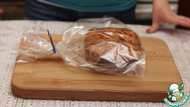 Накрываем миску пленкой и на сутки убираем в холодильник мариноваться.