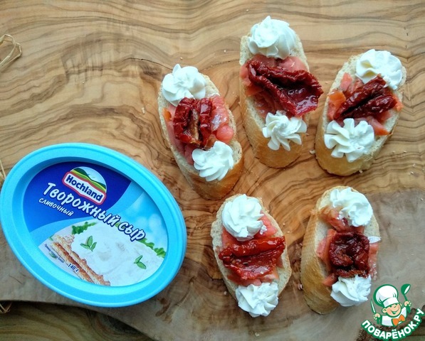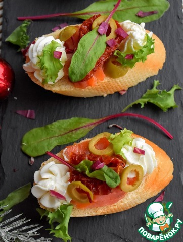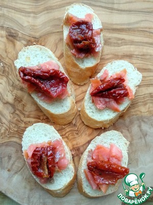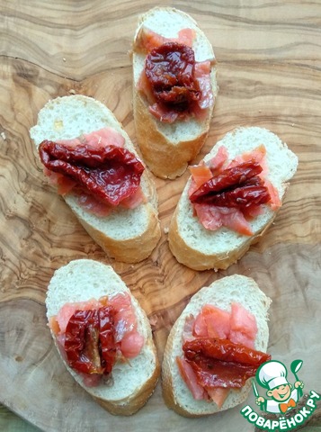 Рецепт «Брускетта с сёмгой и вялеными томатами»: