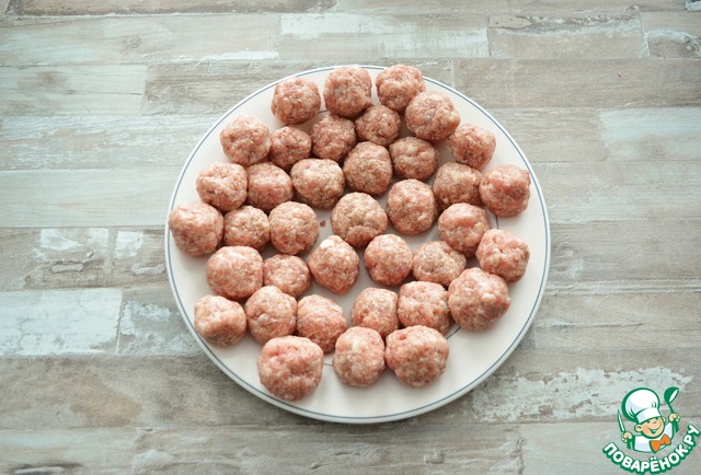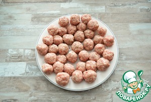 Сформируйте из фарша фрикадельки размером с грецкий орех.