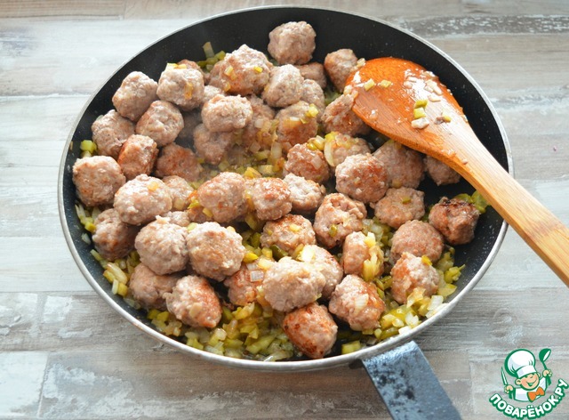 Если все фрикадельки не помещаются сразу, то обжаривайте их порциями. Я жарила в два этапа. -