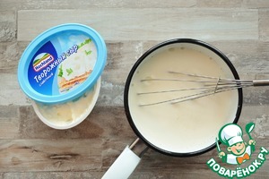 Венчиком тщательно смешайте творожный сыр с мукой и молоком
