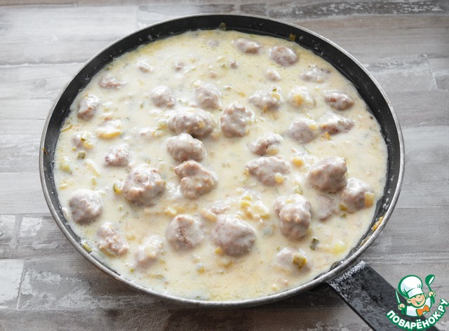 Мясные фрикадельки в нежном соусе из молока и сливочного сыра с пикантной ноткой, которую придает добавление маринованных корнишонов.