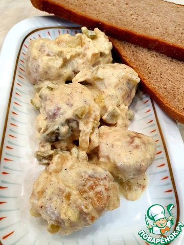 Рецепт «Фрикадельки в сливочном соусе с корнишонами»: