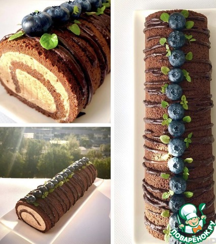 Рецепт «Шоколадный рулет с кокосовым кремом»: