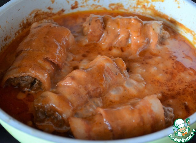 Добавить томатный соус, сахар, влить 100 мл. кипятка.