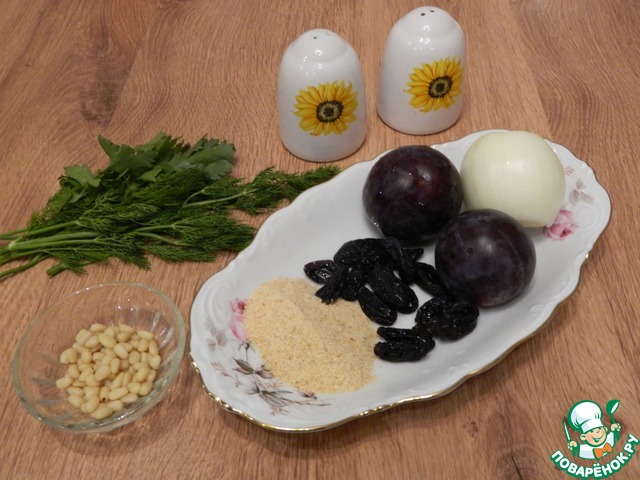Ингредиенты для «Скумбрия с орехами, сливами и изюмом»: