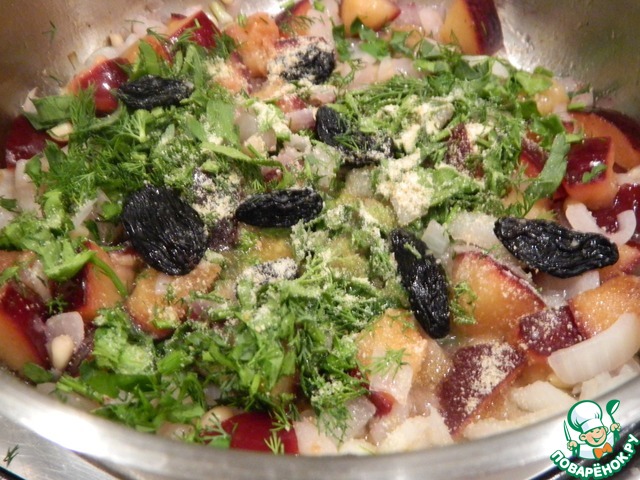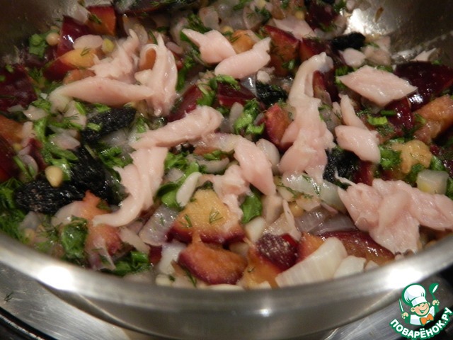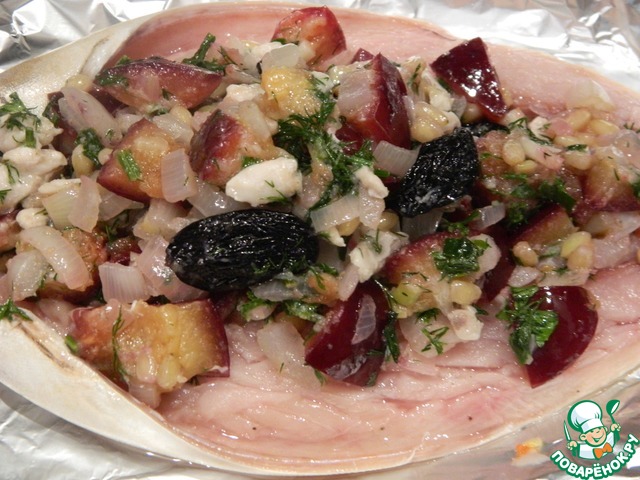 Рецепт «Скумбрия с орехами, сливами и изюмом»:
