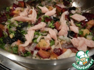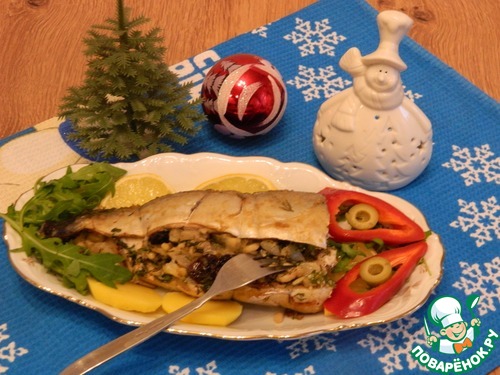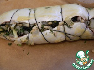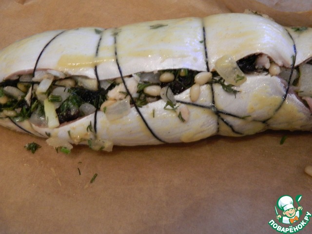 Выложим начинку на рыбу.