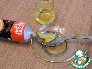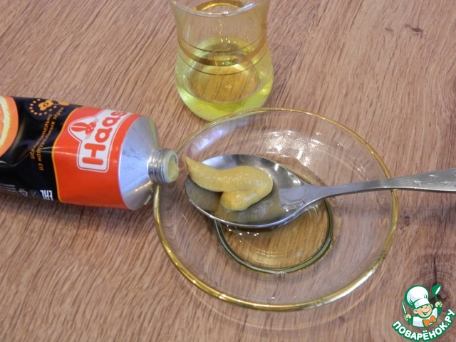 Приготовим соус из масла и горчицы.