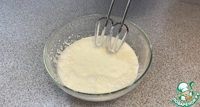 Взбиваем нашу сливочную массу 7-10 минут до небольшой "густоты"