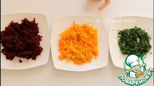 Морковь и свеклу варить и натереть на мелкой терке. Укроп очень мелко нарезать