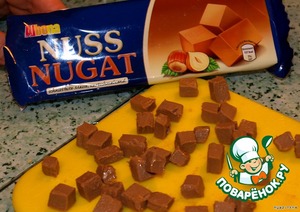 • Шоколад"Нугат" перед нарезкой лучше положить в морозилку минут на 10, потом порезать на кубики (я сфотографировала этот шоколад, т. к. не знаю, есть ли такой в России)
