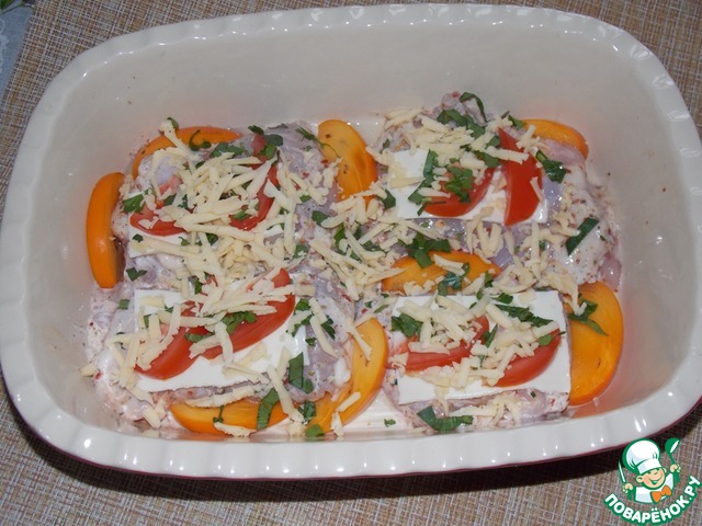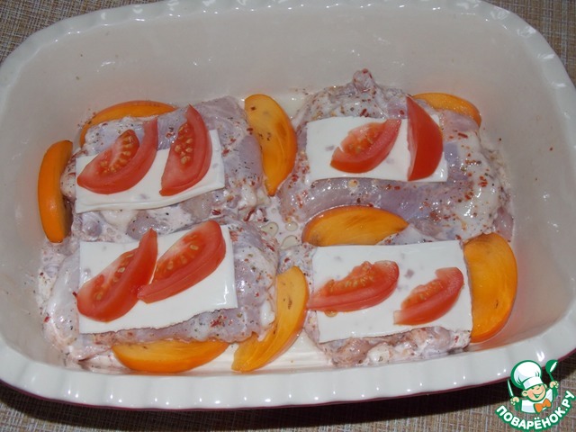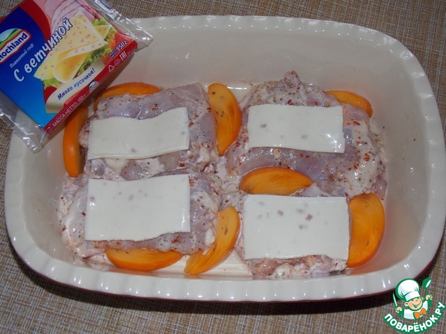 Рецепт «Запечённые бедра с хурмой и сыром»:
