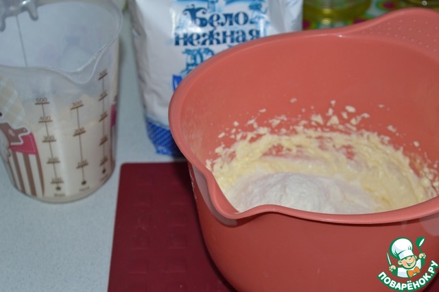 • Размягченное сливочное масло взбить с сахаром до полного смешивания.