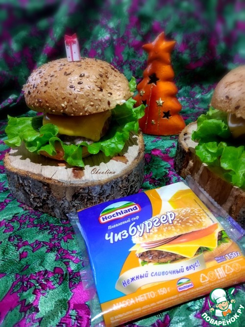 Закрепляем шпажкой и подаём. Вот такой чизбургер получился.