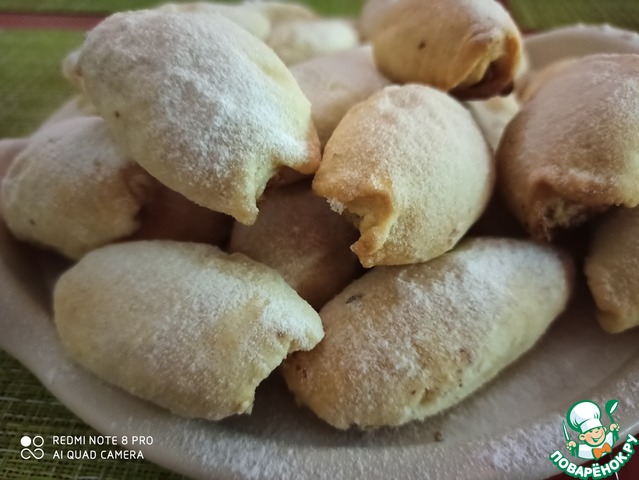 Готовое печенье немного остудить и теплым обвалять в сахарной пудре.
