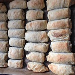 Достать тесто из холодильника, отрезать половину, вторую часть снова убрать в холодильник.