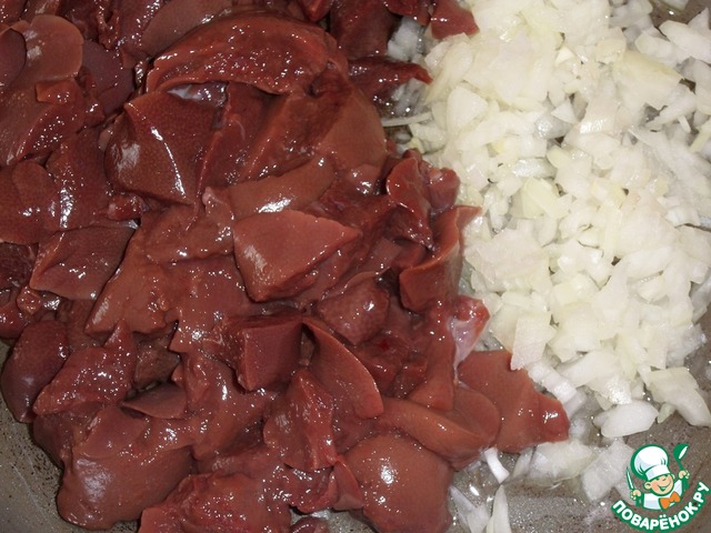 Лук очищаем и мелко нарезаем. Печень промываем и нарезаем. Я использую печень кролика, с куриной печенью пирог получится ничуть не хуже.
