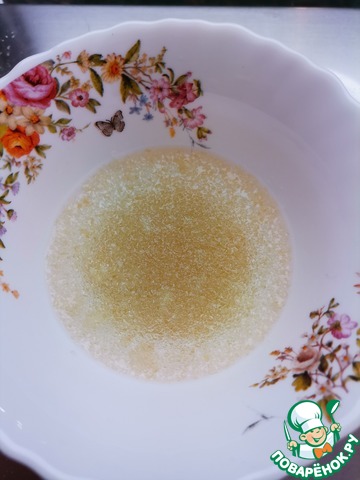 Желатин залить водой и оставить на 15 минут для набухания. Лучше взять быстрорастворимый желатин.