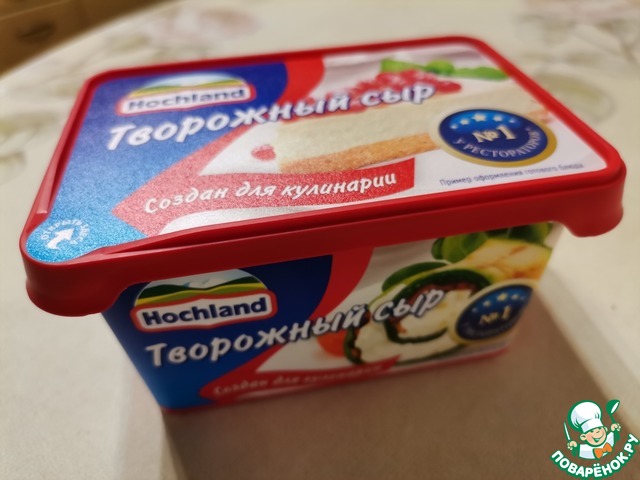 Для этого десерта я буду использовать творожный сыр Hochland. Отличный сливочный вкус, который прекрасно подходит для десертов.
