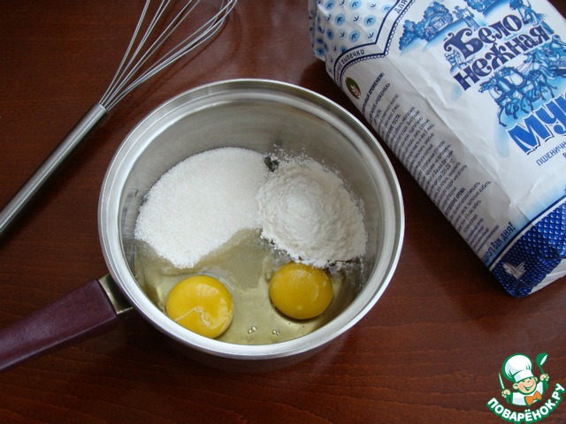 • В сотейнике смешать яйца, сахар и кукурузный крахмал.