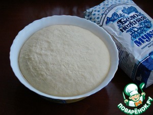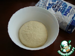 • Пока готовили курд, опара хорошо подошла и можно продолжить замешивать тесто.