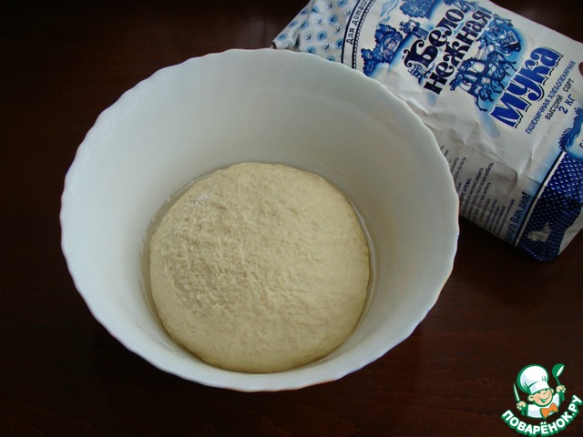Тесто округлить и поместить в смазанную растительным маслом миску. Накрыть пленкой и поставить в теплое место для подъема.