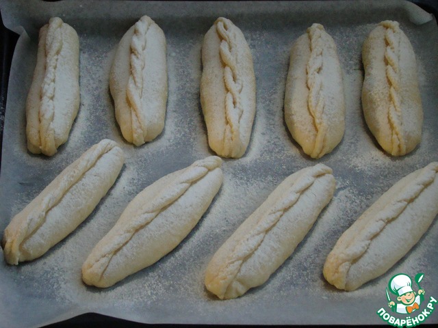 такое ощущение, что один шаг пропустили. Говорите, что сделали в виде батончиков, а следующее фото булочки уже с косичками. Так эти косички просто положили на батончике или той же водой прикрепили. Мне кажется, это надо указать.