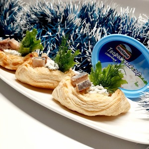 Закуска, которая быстро готовится и выглядит очень нарядно на праздничном столе! Вместо сельди можно использовать и другую рыбу или вовсе готовить без неё. Со сливочным сыром сочетаются различные варианты. Угощайтесь!