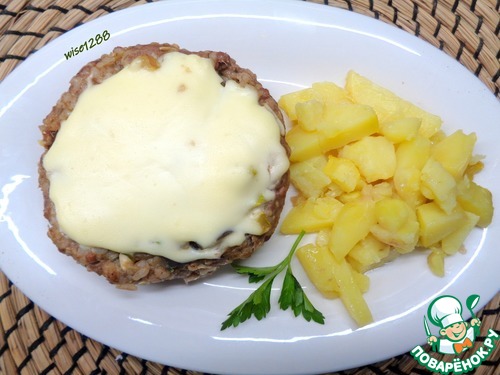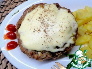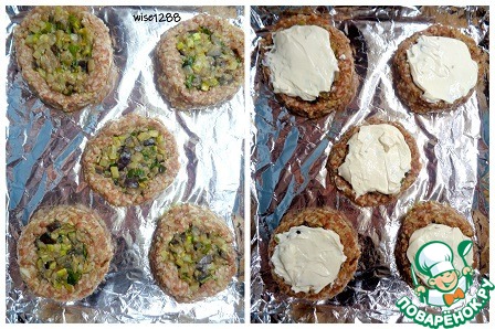 Мясные галеты, с ароматной и сочной начинкой из баклажана и кабачка, увенчаны сырной шапочкой.