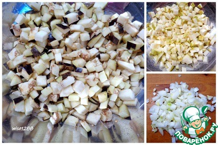 Для начинки баклажан и кабачок нарезать кубиками, лук произвольно.
