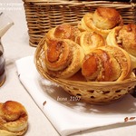 Разрезать рулет на порционные кусочки и выложить на противень застеленный ковриком для выпечки. Накрыть булочки полотенцем и дать им отдохнуть минут 20. Затем смазать булочки взбитым яйцом и отправить в духовку при 190 гр до готовности.
