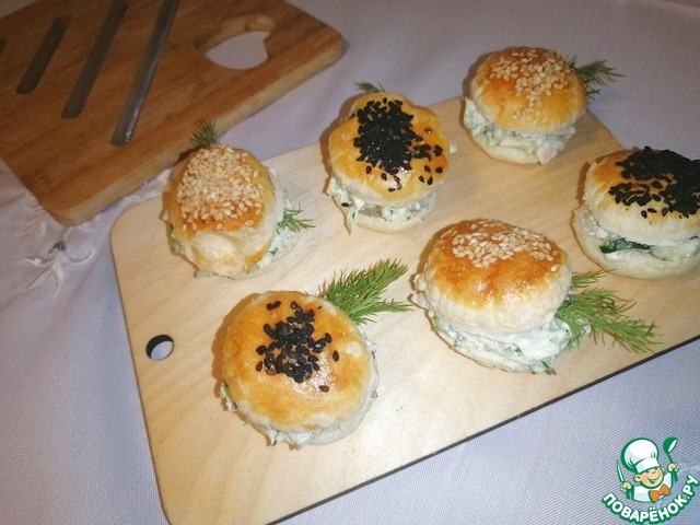 Ингредиенты для «Быстрая закуска из слоёного теста»: