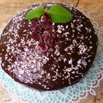 Пока глазурь не застыла, украсьте поверхность. Я это сделала при помощи клюквы, кокосовой стружки и розмарина. Поставьте в холодное место до застывания глазури и.
